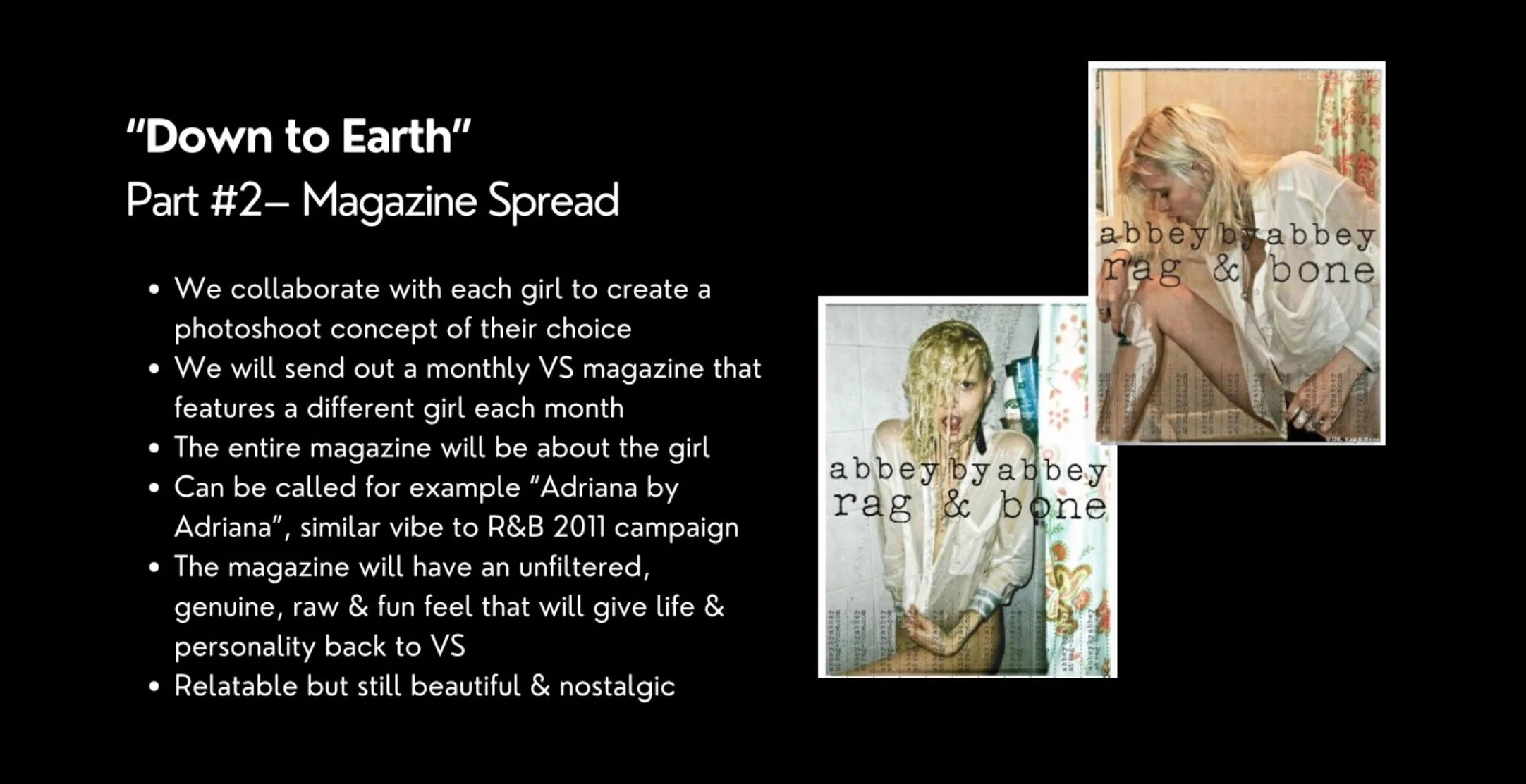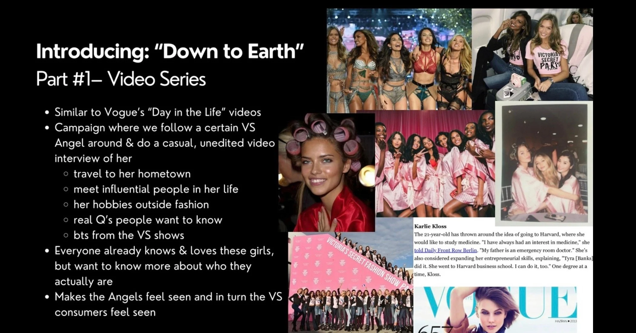 This is my own re-branding concept I have created for Victoria’s Secret, which focuses on authenticity while maintaining the glam & nostalgia of the brand. Like many women, I grew up with Victoria’s Secret and looked up to many of the VS Angels. Appearances aside, I remember I was much more captivated by who these women were and how they got to this place in their life, rather than their obvious traditional beauty. I read a GQ interview wit Adriana Lima on how she wanted to become a paediatrician before she ever got scouted for modelling, and this taught me that being feminine meant more than just being physically beautiful. The OG Angels have become the face of the VS brand for decades, and I feel that these women deserve a chance to share their lives with us outside of the modelling world, which in turn, can help shift VS into a more energetic, creative, fun & lively brand identity which many young women have been craving for them to do in recent years. We can lean into a relatable & ‘down to earth’ vibe with whimsical & nostalgic visuals, pulling inspiration from Lana Del Rey, Suki Waterhouse, and Sofia Coppola. All images used obtained from Pinterest.